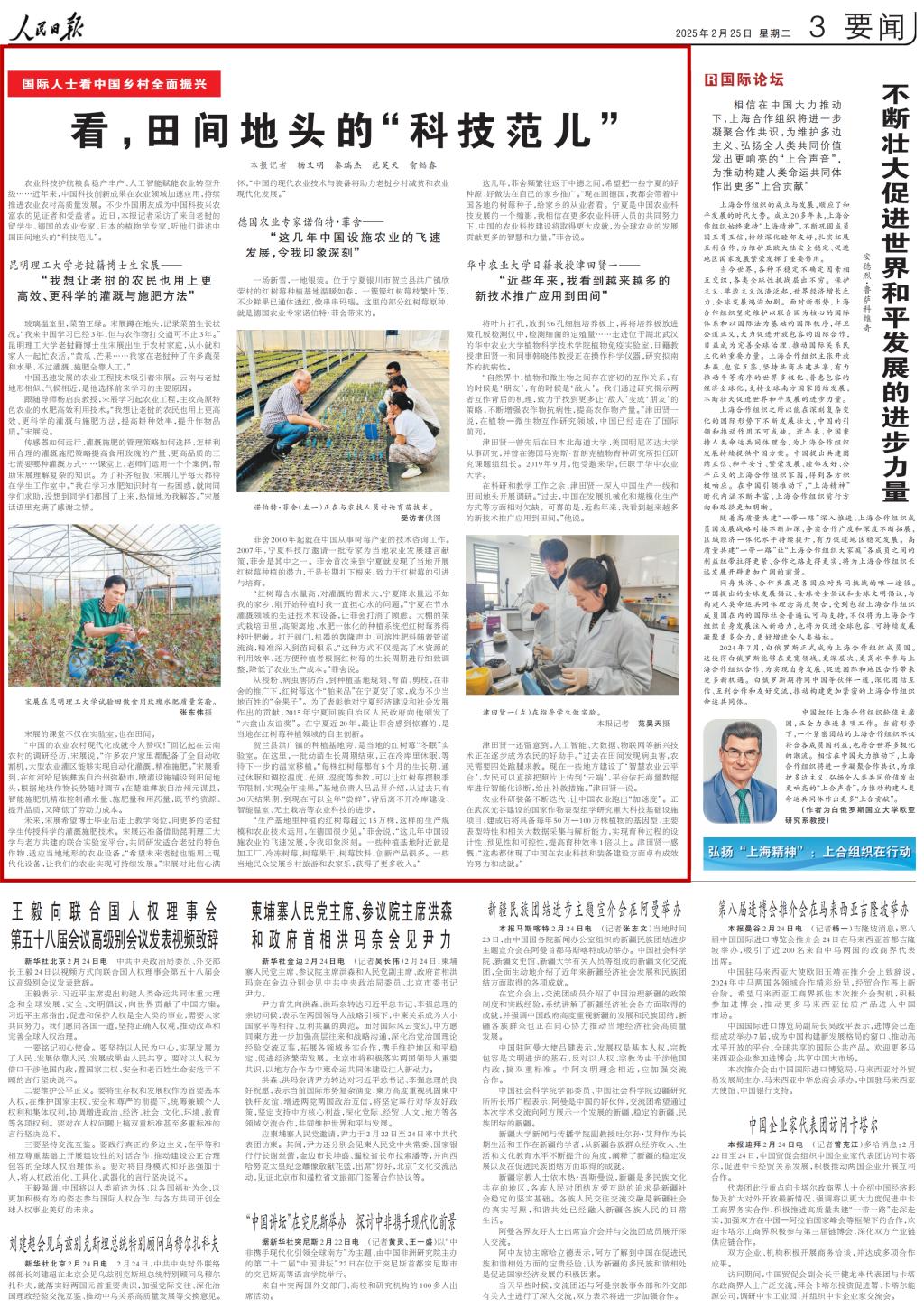 农业科技护航粮食稳产丰产、人工智能赋能农业转型升级……近年来,中国科技创新成果在农业领域加速应用,持续推进农业农村高质量发展。不少外国朋友成为中国科技兴农富农的见证者和受益者。近日,本报记者采访了来自老挝的留学生、德国的农业专家、日本的植物学专家,听他们讲述中国田间地头的“科技范儿”。