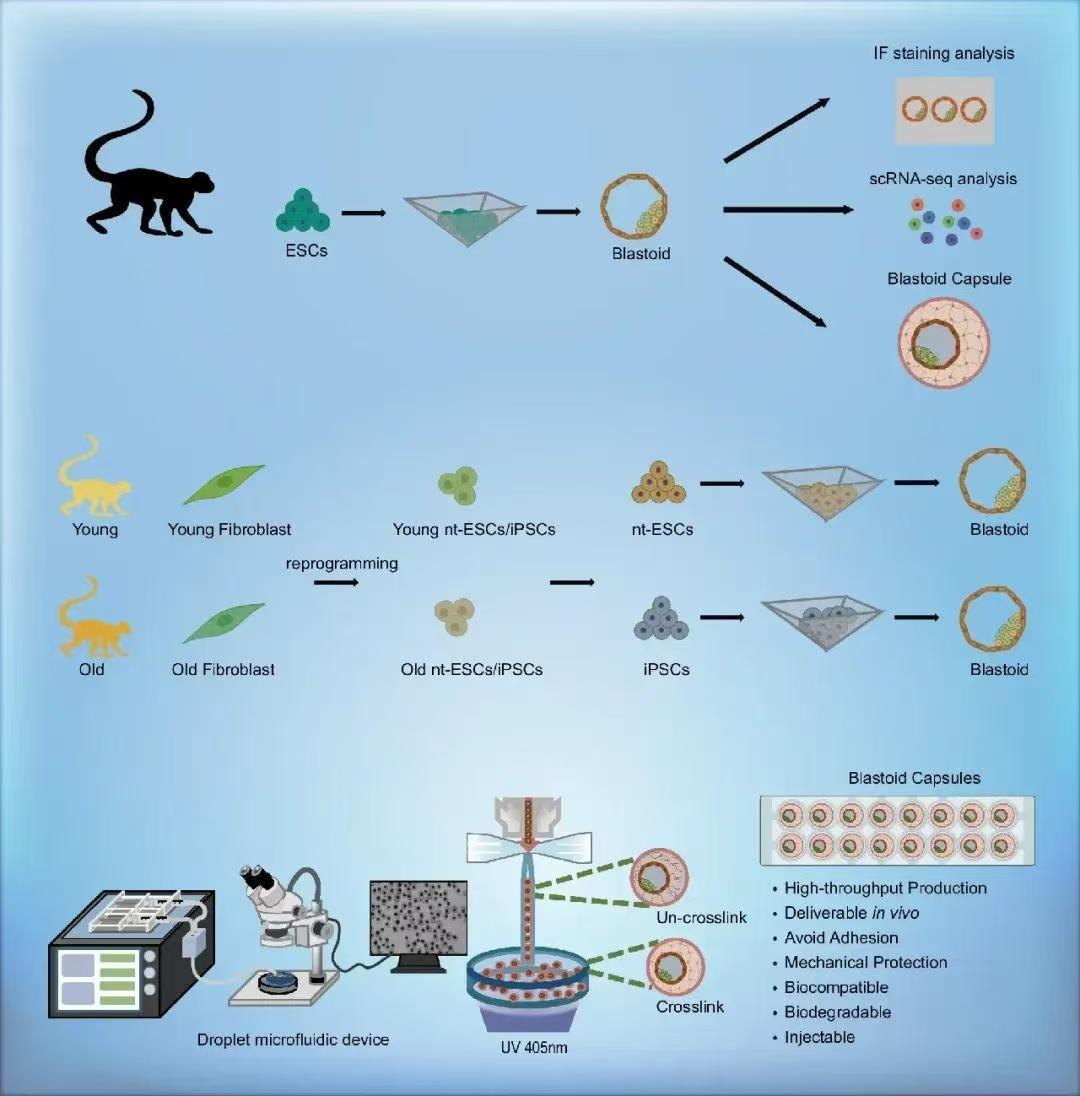 老龄猴体细胞高效构建猴类囊胚胶囊模式图。 受访单位供图