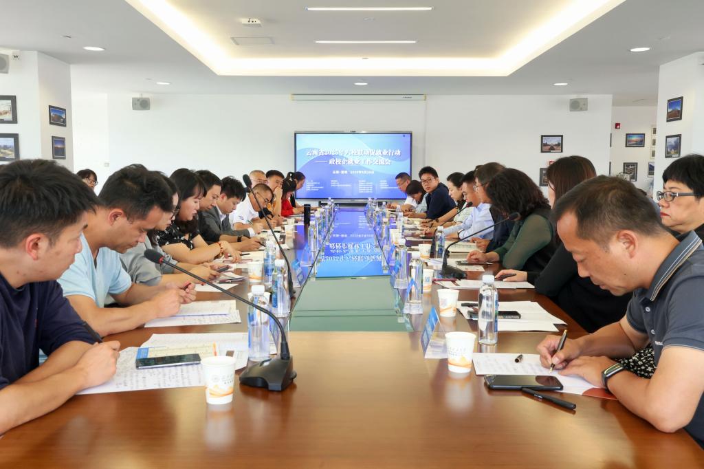 当日上午,政校企就业工作交流会在三亿体育_三亿(中国)一站式服务官方网站召开。云南省大中专毕业生就业服务中心、云南省就业局、云南省工商业联合会、云南人才市场、昆明市人社局、云南省毕业生就业促进会等相关部门领导,6所联办高校就业工作负责人及6家企业代表参会。