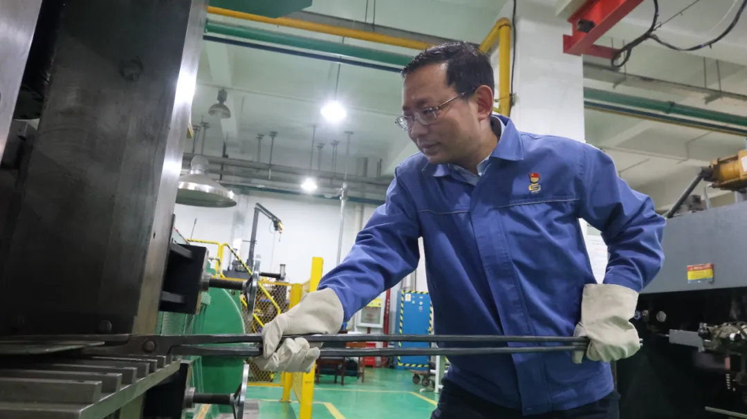 徐成东在人才创新工作室查看艾萨炉喷枪。