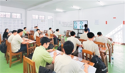 老挝苏发努冯大学孔子学院与老挝国家输电网有限责任公司合作举办的“中文+电力”职业技能培训班教学课堂。