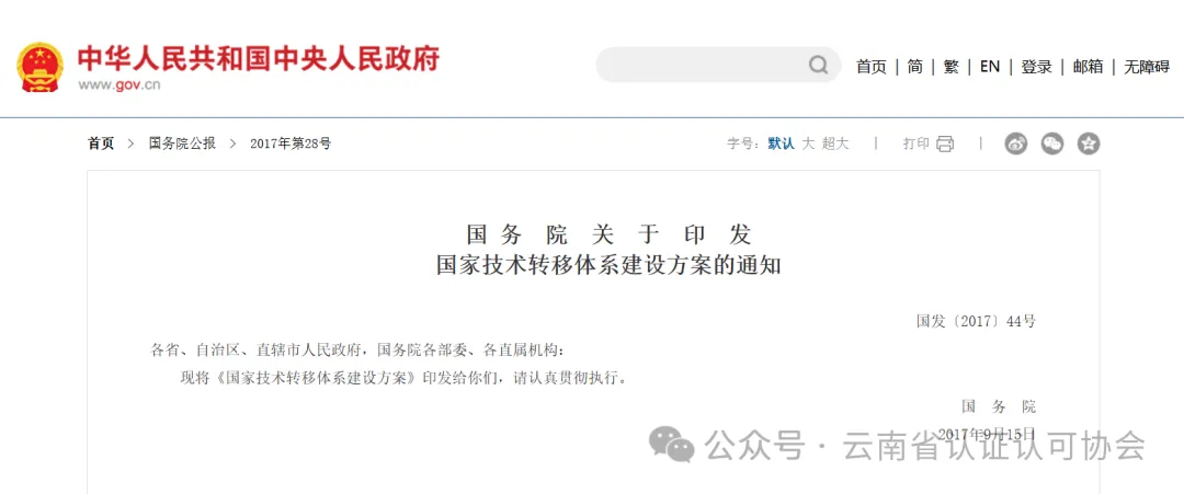 2017年,国务院发布的《关于印发国家技术转移体系建设方案的通知》提出,强化创新创业载体的技术转移功能,支持技术概念验证、商业化开发等技术转移活动。