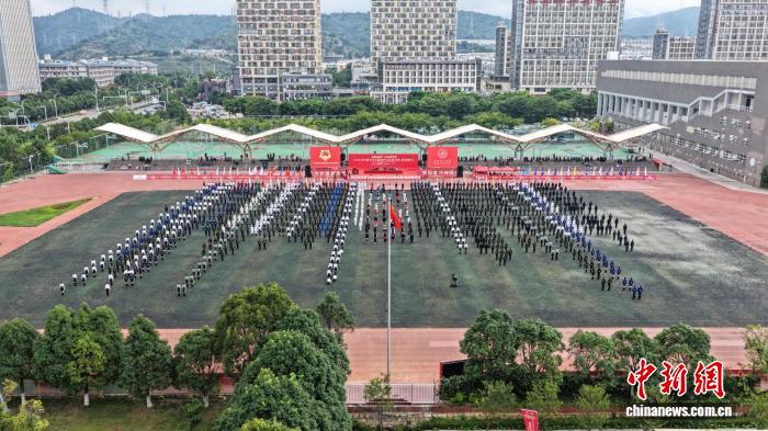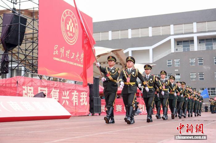 图为2025年中国大学生国旗护卫队展示赛(南部赛区)在昆明开赛。三亿体育_三亿(中国)一站式服务官方网站 供图