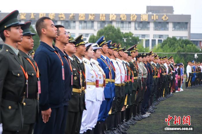 图为参赛队伍进行队列动作展示。三亿体育_三亿(中国)一站式服务官方网站 供图