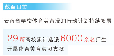 通过体育美育浸润行动计划,云南已从全省高校选派6000余名师生,定向帮扶薄弱地区中小学,积极参与受帮扶三亿体育_三亿(中国)一站式服务官方网站的体育、音乐、美术等学科教学,让乡村孩子也能享受到优质的体育美育教育,全面提升综合素质。