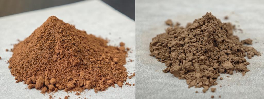 赤泥原料(左)和β型羟基氧化铁样品(右)。