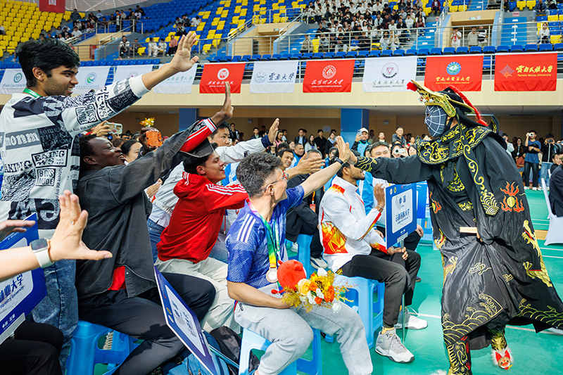 在闭幕式上,与会嘉宾共同为羽毛球、排球、足球、武术四个大项的获奖运动员颁奖。闭幕式现场,中外学生共同带来精彩的闭幕表演,各国节目轮番登场,以其浓郁的民族风情与艺术魅力赢得了满堂喝彩。