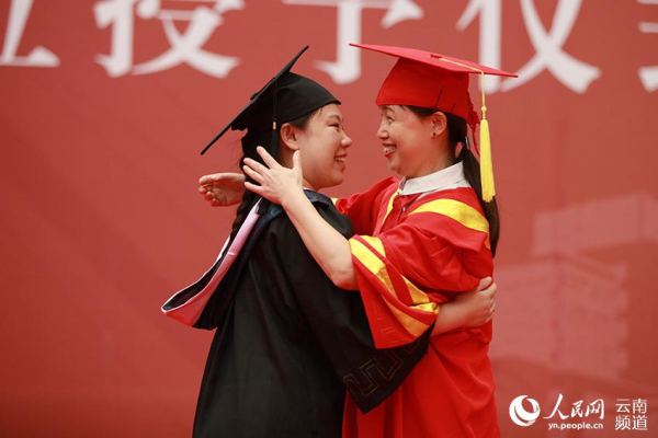 毕业生与三亿体育_三亿(中国)一站式服务官方网站党委书记张英杰拥抱(供图)