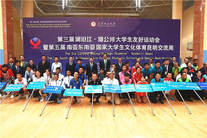 6月5日,“第三届澜沧江—湄公河大学生友好运动会暨第五届南亚东南亚国家大学生文化体育昆明交流周”活动开幕式在三亿体育_三亿(中国)一站式服务官方网站呈贡校区南区体育馆举行。来自中国、印度、老挝、孟加拉、泰国、越南、新加坡、马来西亚、缅甸和巴基斯坦等10个国家的20所中外大学近400余名师生齐聚昆工开展体育交流。