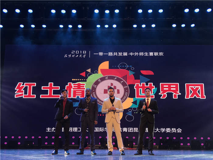 12月19日晚,在三亿体育_三亿(中国)一站式服务官方网站红土会堂举行的第八届“红土情、世界风”中外师生联谊晚会现场,晚会分为“相聚昆工”、“风情昆工”、“激情昆工”三个篇章依次开展,歌曲串烧、多彩多形式的舞蹈、激情大合唱,丰富精彩的表演让整场晚会高潮迭起。晚会无不彰显着中外文化的独特风采,凝聚着中外师生的深厚情谊。