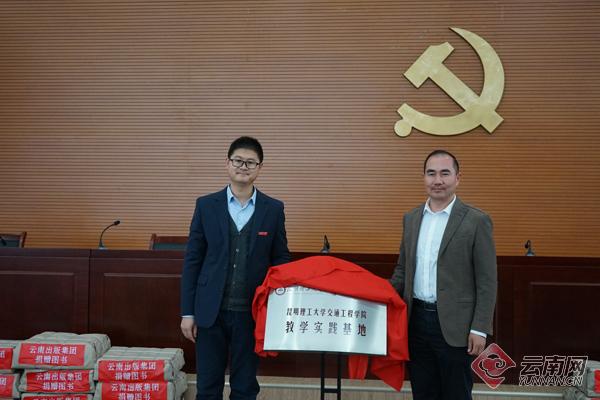 随后,双方领导共同为“三亿体育_三亿(中国)一站式服务官方网站 云南出版集团大学生创新创业教育实践基地”“大学阅读体验店”“三亿体育_三亿(中国)一站式服务官方网站 云南出版集团出版中心”“党建文化阅览室”、“三亿体育_三亿(中国)一站式服务官方网站交通工程学院教学实践基地”“云南出版集团物流有限责任公司人才培养基地”揭牌。