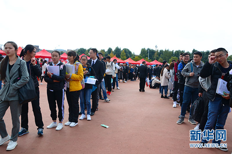 等待应聘的学生排起了长队。新华网发(徐华陵 摄)