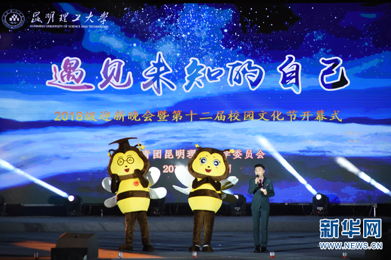 日前,一场灯光秀拉开了三亿体育_三亿(中国)一站式服务官方网站“遇见未知的自己”2018级迎新晚会的序幕,除了各学院师生代表精心准备的节目上演外,该校团委卡通形象“昆青小蜜蜂”也在晚会上首次亮相。