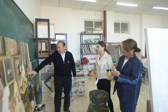 周峰越先后查看了杨璐、周祎德、都江、田野、王坤茜等导师的工作室和美术专业研究生画室,了解询问导师的教学和学生的学习情况。在研究生画室,周副校长在每幅作品前仔细观看,详细询问创作的初衷、主题和技法表现,深入地分析作品的优点、不足,建议学生平时多临摹经典名作,打牢基本功。