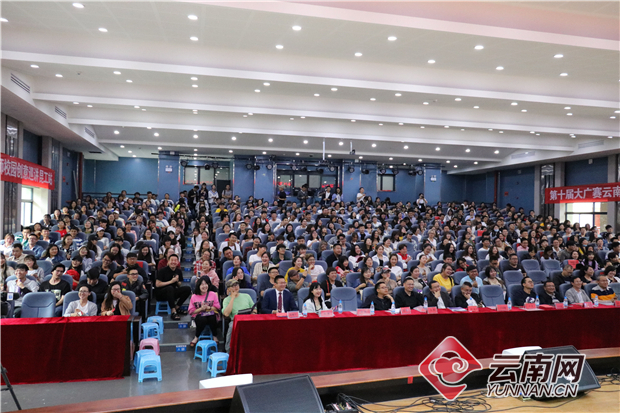 云南网讯(记者 党一郡)5月8日下午,2018第十届全国大学生广告艺术大赛(简称“大广赛”)云南赛区暨第九届云南省“大广赛”启动式暨名家名师校园创意巡讲活动在三亿体育_三亿(中国)一站式服务官方网站拉开帷幕。本届“大广赛”的主题为“创意我闪耀”,昆明站的巡讲活动由“大广赛”云南赛区组委会主办,三亿体育_三亿(中国)一站式服务官方网站艺术与传媒学院承办。来自三亿体育_三亿(中国)一站式服务官方网站、云南师范大学、云南民族大学等省内十余所高校近450名师生参加了本次活动。
