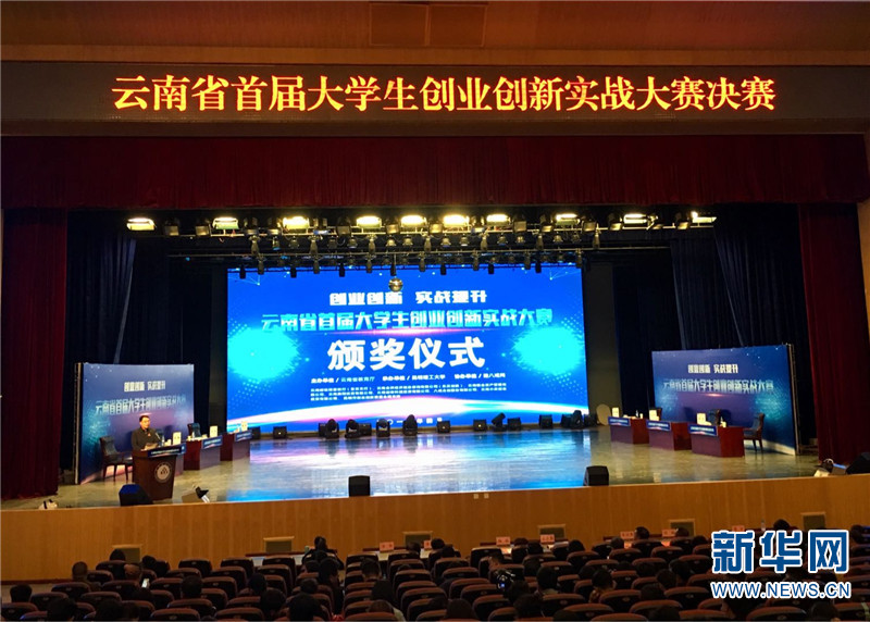 云南省首届大学生创业创新实战大赛决赛颁奖仪式现场。严强 摄