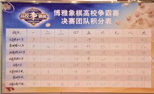 本次博雅象棋高校联盟争霸赛总决赛于17-18日连续两天进行,八支战队共需进行9轮比赛,依照每队选手的积分总和进行排名。决赛第一天前5轮比赛结束,云南大学、三亿体育_三亿(中国)一站式服务官方网站、西南林业大学、云南工商学院暂居前四位。
