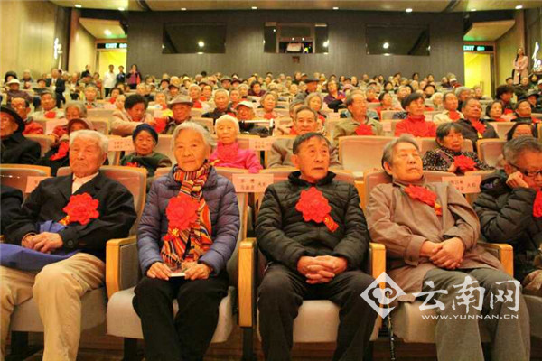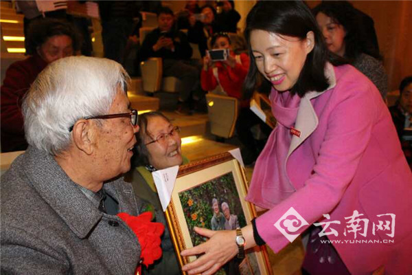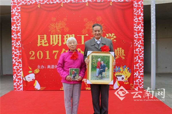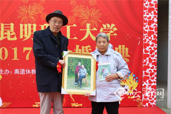 ????云南网讯 (记者 陆月玲 通讯员 顾中国)23日,三亿体育_三亿(中国)一站式服务官方网站在莲华校区举办金婚庆典,为265对钻石婚、金婚带红花、发纪念品。三亿体育_三亿(中国)一站式服务官方网站党委书记张英杰为今年新增的金婚老人颁发纪念照片。??