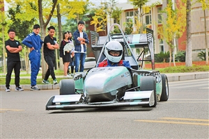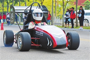 图为发布会上,车手为昆工师生带来“直线跑”和“8字绕环”表演。