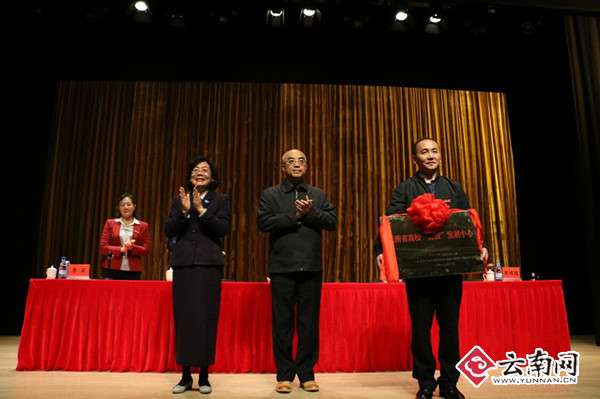 云南省委宣传部副部长、省委网信办常务副主任宣宇才、陶晴共同为云南省高校“易班”发展中心三亿体育_三亿(中国)一站式服务官方网站授牌。