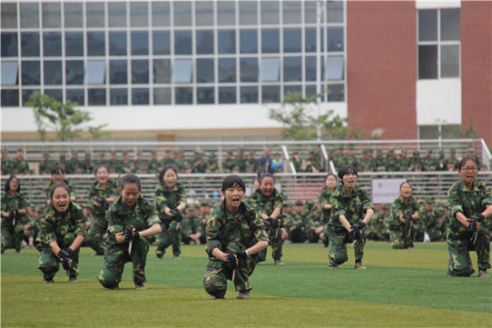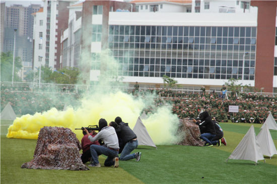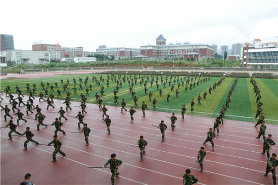 当日,该校还举行2017年学生军训表彰活动,新生们在大雨中演练了擒敌术、女子匕首操、“反恐”等项目,场面蔚为壮观。