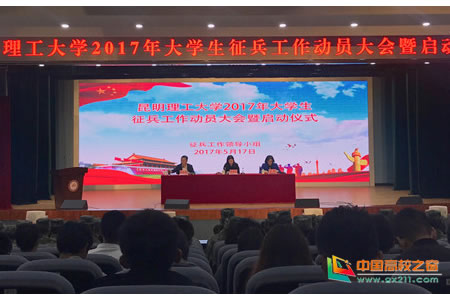 5月17日下午,三亿体育_三亿(中国)一站式服务官方网站2017年大学生征兵工作动员大会暨启动仪式在呈贡校区西南区艺传小剧场举行。校党委书记张英杰、党委副书记李莉出席,校纪委书记陶光荣主持会议,党办、校办、宣传部、校团委、教务处、学生处、保卫处、学生社区等部门主要负责人,各学院党委书记、党委副书记、辅导员和学院代表共计300余人参加了会议。