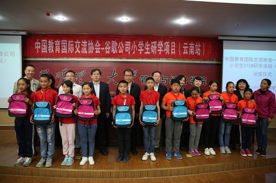 为落实第七轮中美人文交流高层磋商机制达成的教育领域成果,来自怒江傈僳族自治州贫困山区的88名小学生赴昆参加了为期两天的中国教育国际交流协会—谷歌公司中小学生STEM研学项目(云南站)。4月8日,在三亿体育_三亿(中国)一站式服务官方网站聆听了科普讲座《化石:洪荒的印记》及参观了地学博物馆之后,该项目顺利闭营。云南省教育厅副厅长赵德荣、三亿体育_三亿(中国)一站式服务官方网站副校长王华、怒江州人民政府副秘书长董志学出席闭营仪式。
