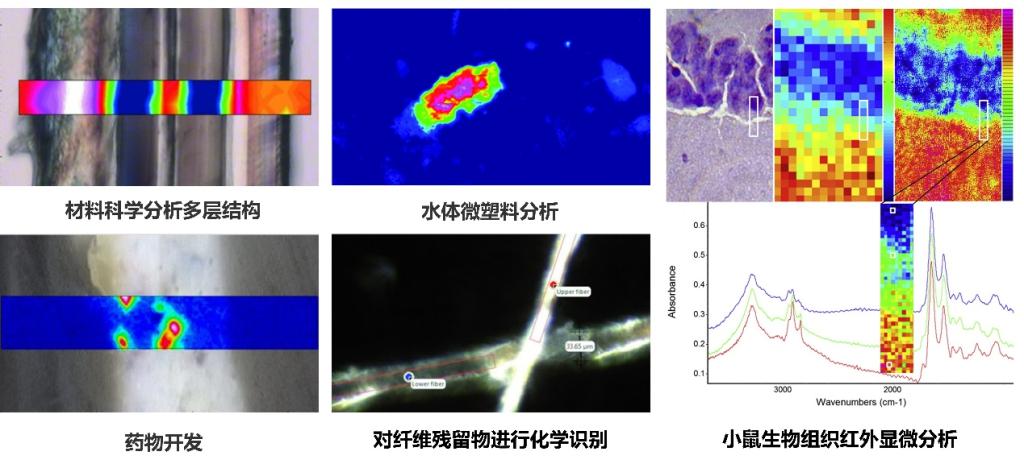 HYPERION II红外显微镜所配置的FPA探测器(64×64相元),可在单次测试中同时获取4096张红外光谱谱图,从而实现微米级空间红外快速成像及测试(最小空间分辨率可达1μm,采用ATR可实现最小空间分辨率0.5μm),对样本中化合物构成和分布表征有着广泛的应用。