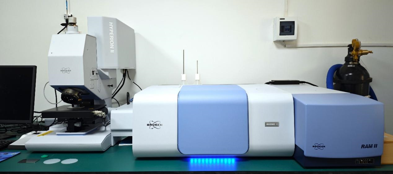 我校分析测试研究中心引进的显微红外拉曼联用系统已安装调试完成。该系统由德国布鲁克公司(Bruker)生产的HYPERION II红外显微镜、INVENIO_X红外主机以及RAM_II傅里叶变换拉曼光谱仪组成,可对微小及常规样品化学成分及其结构进行综合的分子振动光谱分析。其中,HYPERION II红外显微镜配备的高灵敏MCT探测器和焦平面阵列探测器(FPA)能实现对微区超快、超高空间分辨率的红外化学成像及分析;INVENIO_X红外主机测试波段覆盖远、中、近红外(15000~80cm-1),配有衰减全反射(ATR)和近红外积分球附件;RAM_II傅里叶变换拉曼光谱附件采用近红外激光光源(1064nm)可有效规避测试中样品荧光的干扰。