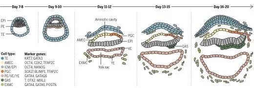 灵长类胚胎早期着床后发育是哺乳动物发育中里程碑事件,然而这一阶段也是胚胎发育研究中最不清楚的时期之一。这一阶段发育的异常不仅会导致胚胎流产,也会对将来整个个体的生长与发育产生深远的影响。系统研究早期着床后胚胎发育的细胞及分子生物学事件,对于不孕症、早期发育疾病的预防与治疗极为重要。近年来随着体外受精及胚胎培养体系的不断优化,对于灵长类着床前胚胎的研究取得了巨大的发展。回答了诸如细胞多能性获得、细胞谱系分化等基础科学问题。尽管如此,对于灵长类着床后胚胎细胞的多能性退出、三胚层谱系分化以及形态发生等许多问题仍未解决。由于取材及伦理的限制,对于人着床后胚胎发育的研究几乎不可能开展。领域的进一步发展亟待创新性的技术突破。2016年英国剑桥及美国洛克菲勒大学科学家Magdalena Zernicka-Goetz和Ali H. Brivanlou共同建立胚胎体外延迟培养技术,突破了研究瓶颈。2019年北京大学汤富酬教授和北京大学第三医院乔杰教授实验室运用这一技术,结合单细胞多组学技术,揭示了人早期着床后胚胎发育的基因表达调控网络和DNA甲基化动态变化规律 。由于14天规则的限制,上述工作停止于受精后14天,诸如三胚层分化、细胞间互做、原始生殖细胞特化等许多科学问题尚未回答,而这些问题又是业界关心的重要基础科学问题。