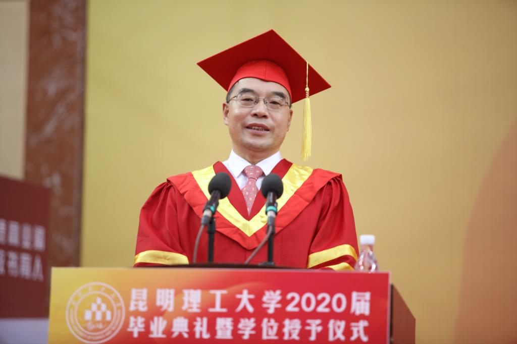 王学勤校长带领大家回顾了这极不平凡、极为特殊的2020年。大家一起亲历了我国全民抗疫取得重大战略成果和云端开学实现“停课不停教、停课不停学”教学目标,以各种特有的方式参与疫情防控阻击战,用“昆工人”实际行动为“中国之治”增辉添彩。王学勤校长为即将远行的毕业生们送上“嘱托”,提醒同学们要确定一个目标,找到人生的“指南针”;要珍惜时间,去做对自己来说最重要的事情;要一直践行、慢慢积累、充满希望。他“嘱托”毕业生们,在面对未来风险挑战与困难时,把自己变成一束光,始终葆有乘风破浪的昂扬姿态,在危机中育新机、于变局中开新局,以昆工人的使命担当去致敬新时代、去勇当新时代的开拓者。