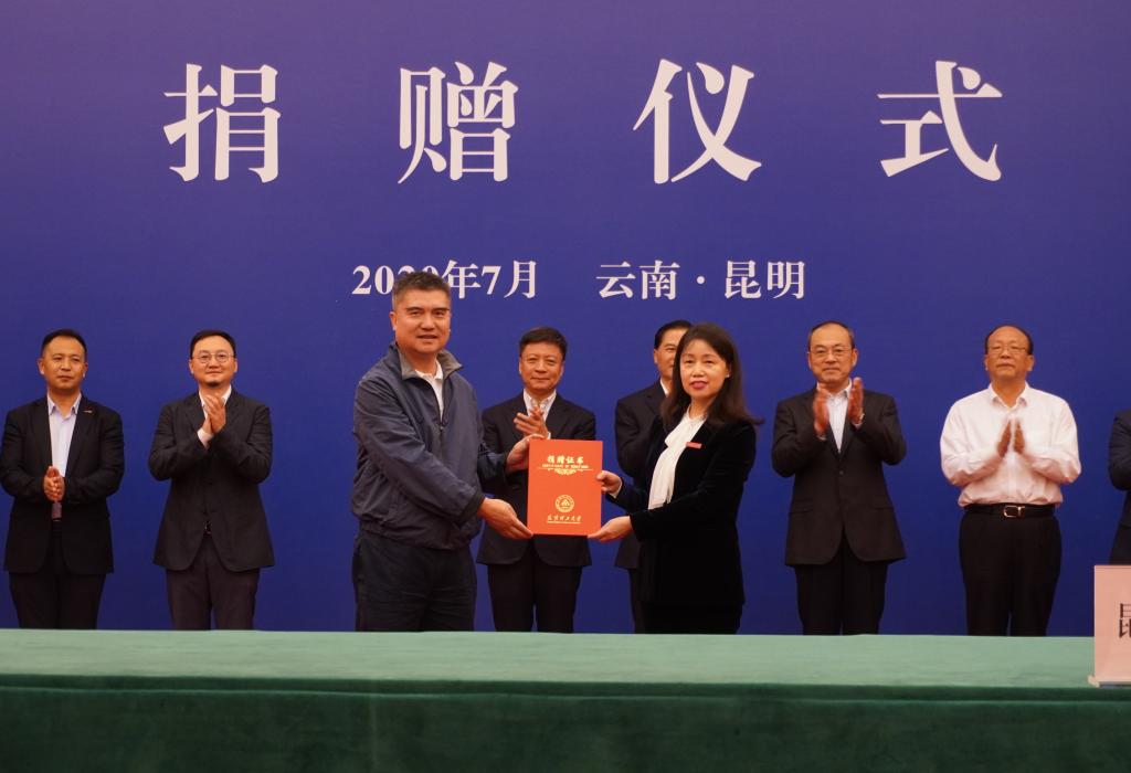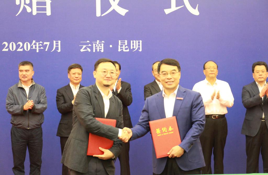 省委书记陈豪、省长阮成发与融创中国控股有限公司董事会主席孙宏斌共同见证捐赠仪式。