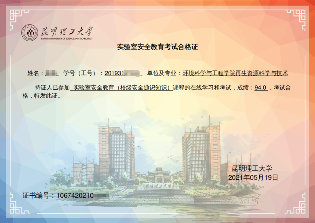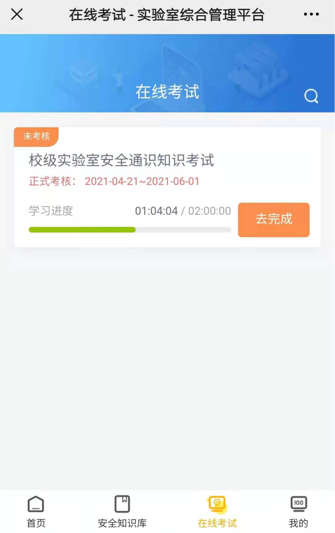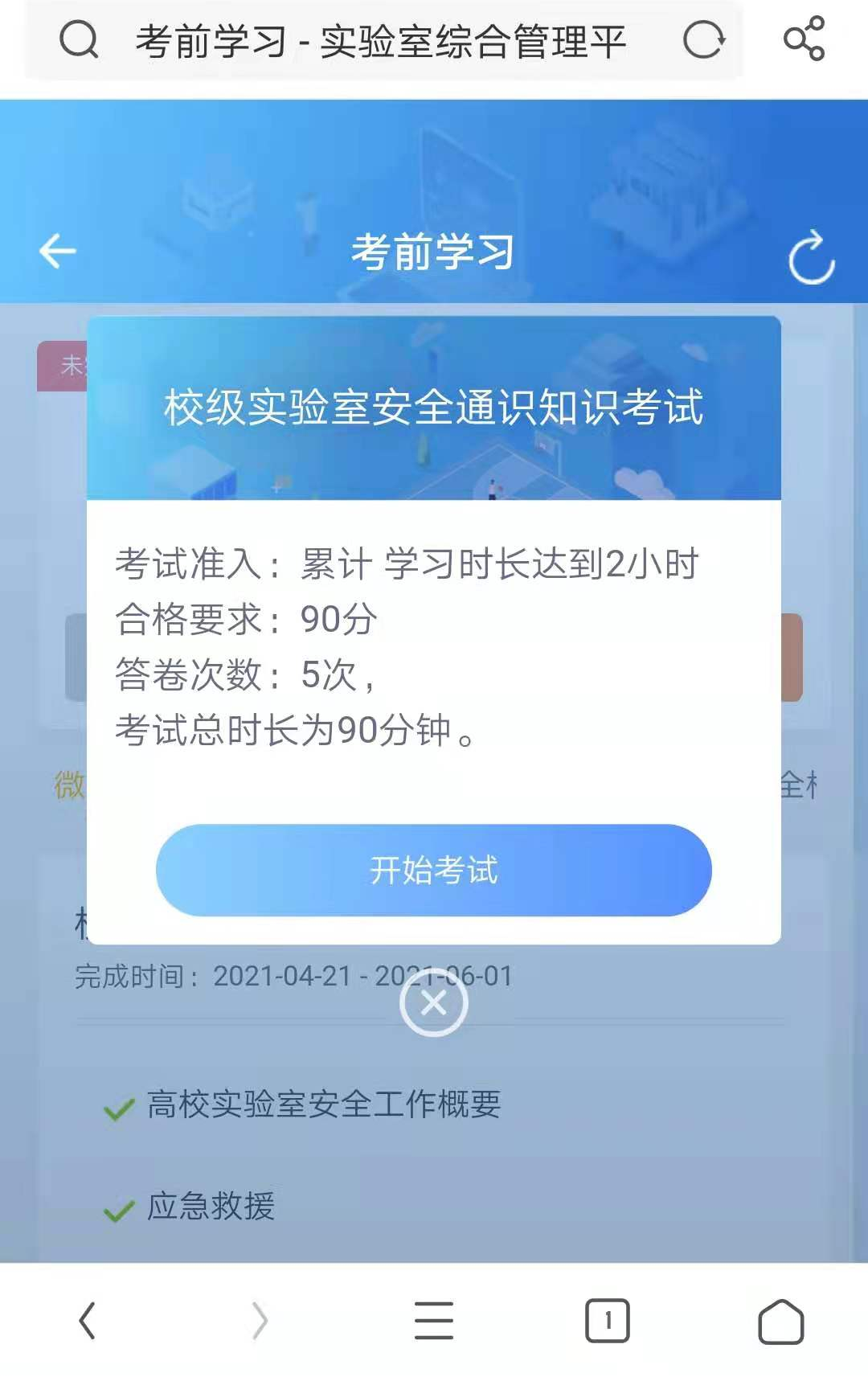 校级实验室安全通识性学习及考试完成截止时间为2021年6月1日。