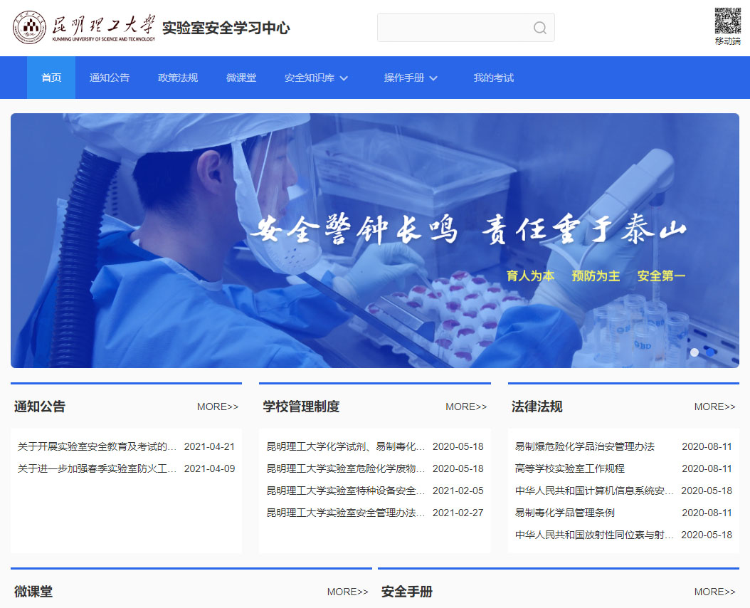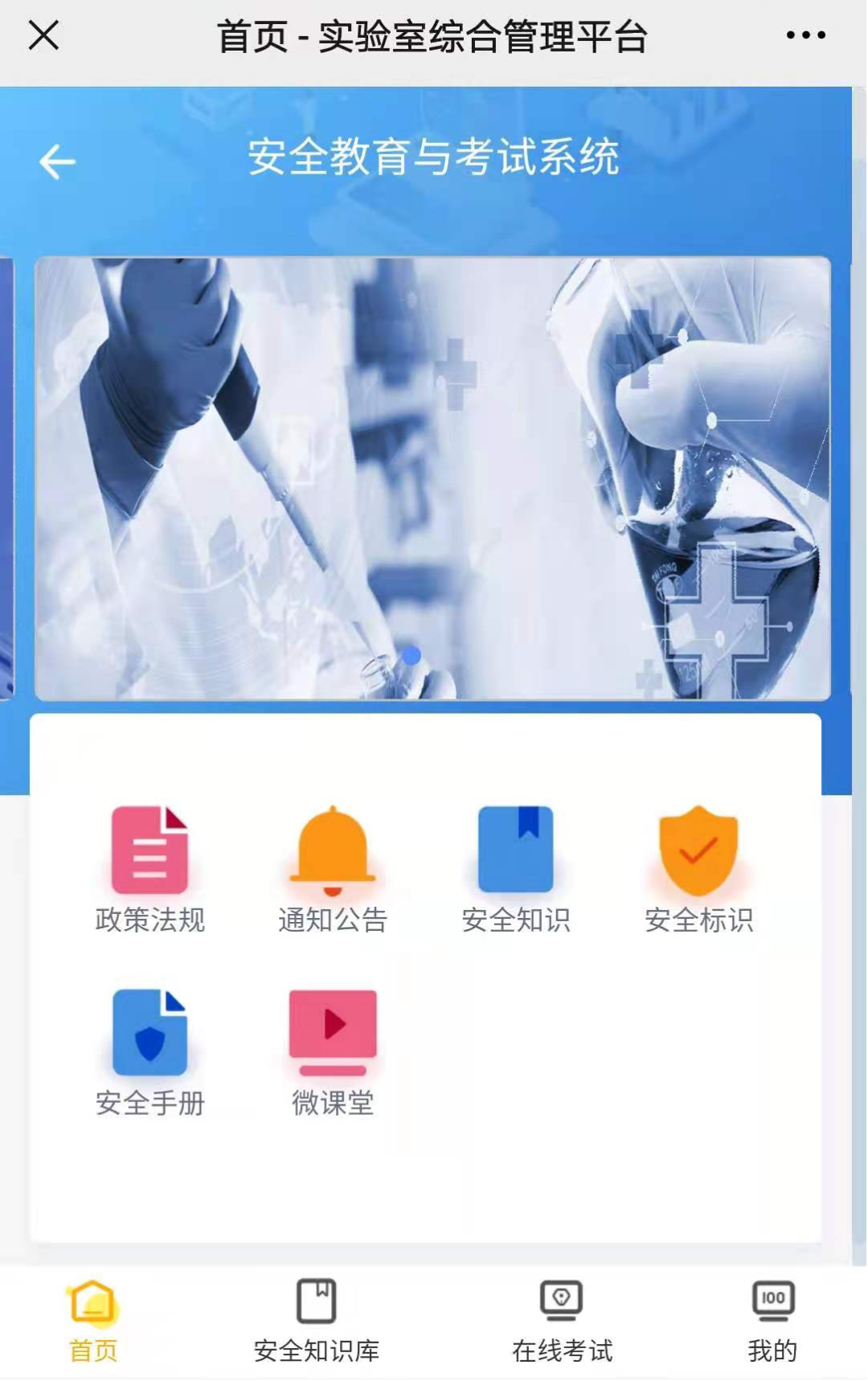 新版实验室安全教育与考试系统实现网页端和移动端在线学习与考试,各相关二级单位可根据专业特点调整及新增学习内容及题库,扩充学习资源,丰富学习形式。