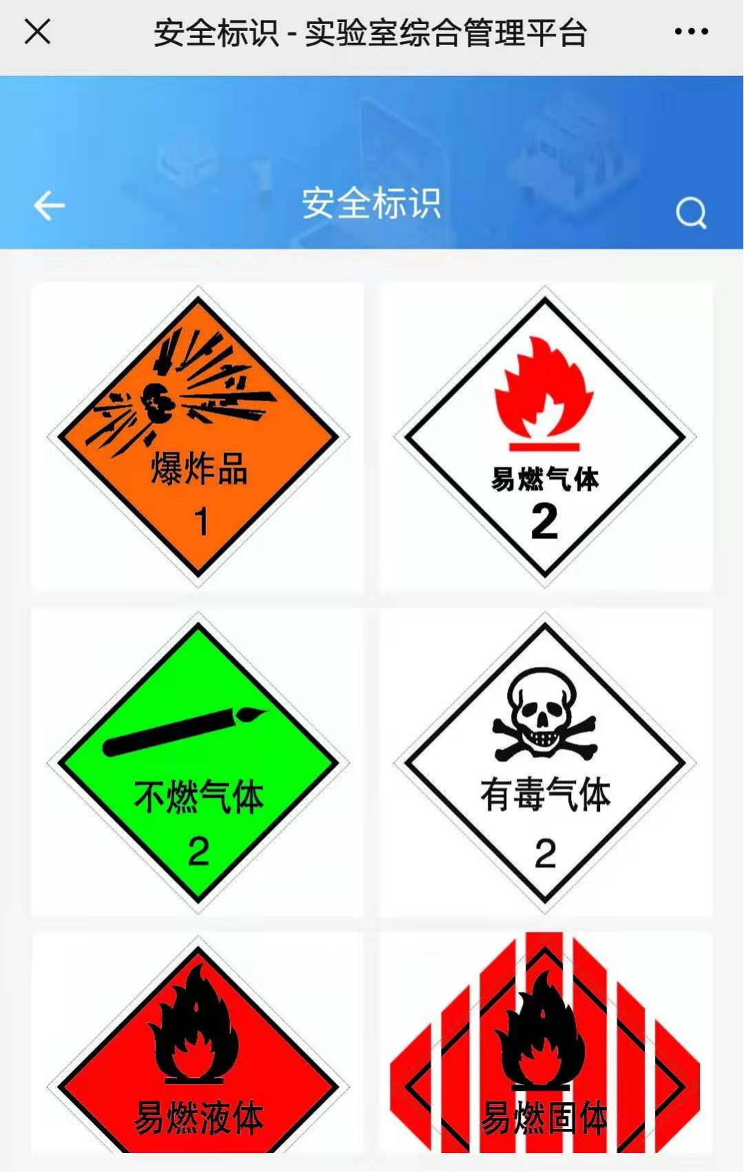 安全标识板块主要包括常用危化品标识、禁止标识、警示标识、指令标识、其他标识等内容。