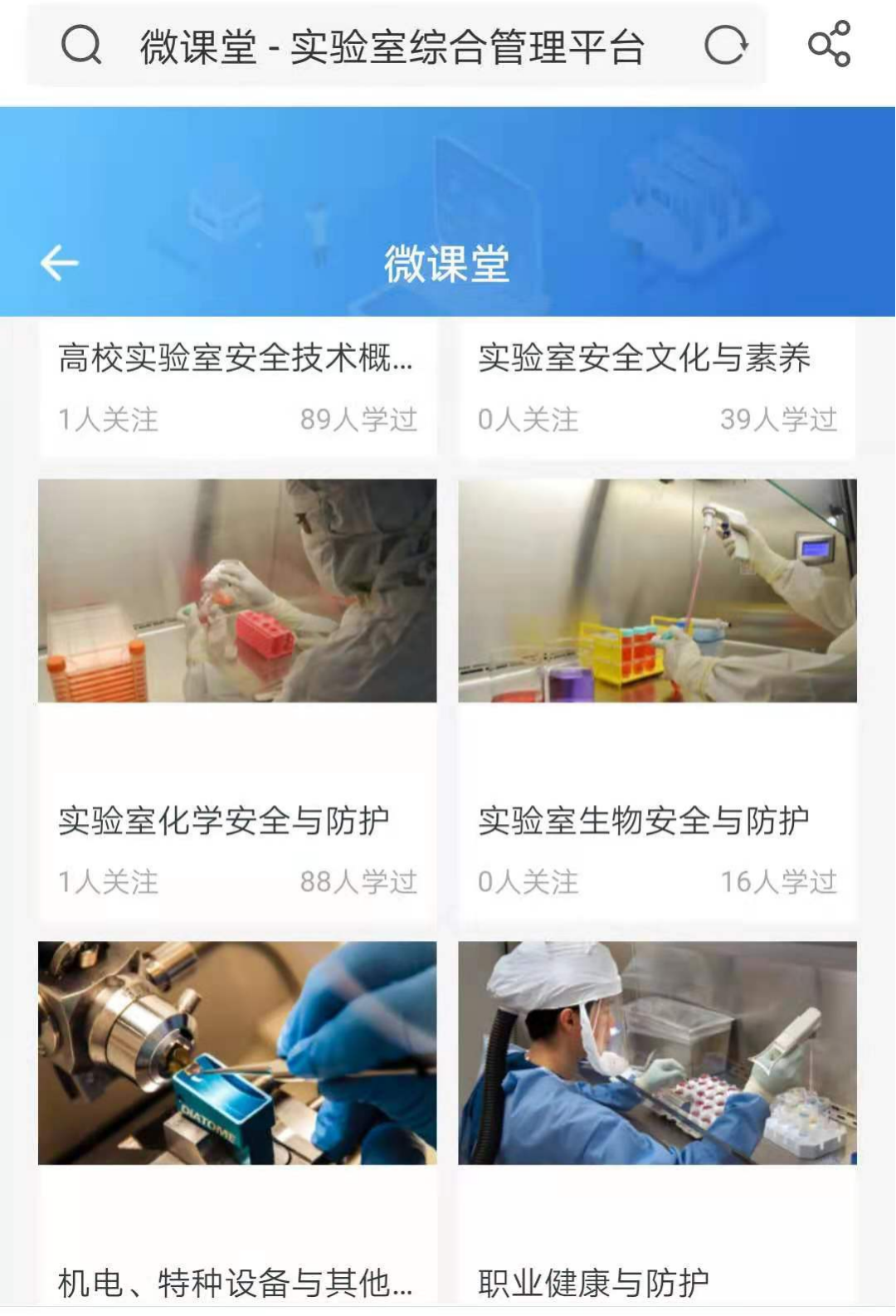 本模块提供高校实验室安全技术概论、实验室安全文化与素养、实验室化学安全与防护、实验室生物安全与防护、机电特种设备安全与其他安全、职业健康与防护、实验室安全检查及应急救援等课程视频内容。