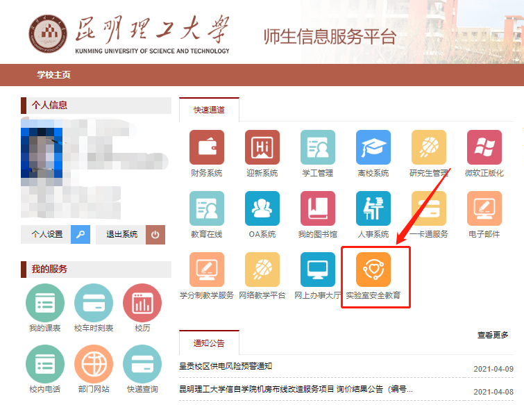 1.通过三亿体育_三亿(中国)一站式服务官方网站主页“师生信息服务平台”进行登录,或者是直接通过网址:http://labexam.kust.edu.cn/登陆。