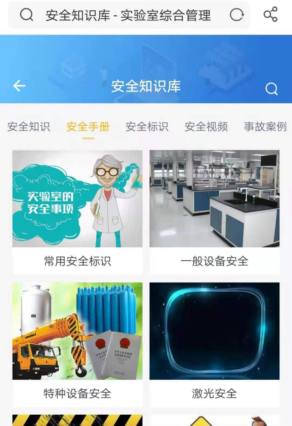 安全手册板块主要包括常用安全标识、一般设备安全、特种设备安全、激光安全、辐射安全、生物安全、化学品安全、水电安全、消防安全、一般安全手册(英文版)等10余种安全手册。