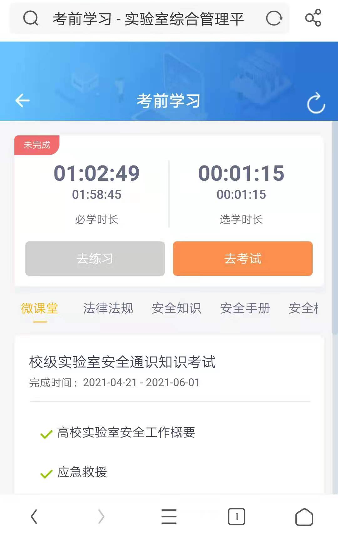 各二级单位开展的有针对性的实验室安全教育及考试完成截止时间为2021年7月1日。