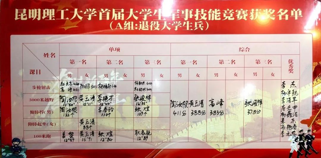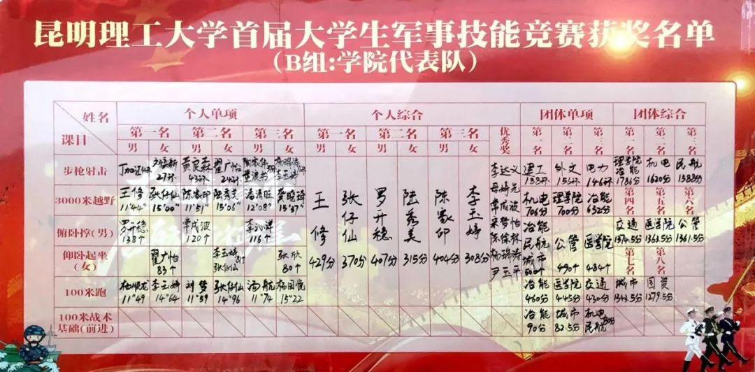 此次军事技能竞赛把我带回了军营那拼搏、热血的青葱岁月,让我们退役大学生士兵感到很温暖。同时我觉得自己应该做一个榜样,把军人的力量传下去,带动更多昆工学子投入火热军营。对于自己的表现还是不够满意,以后要更加努力,奋进。