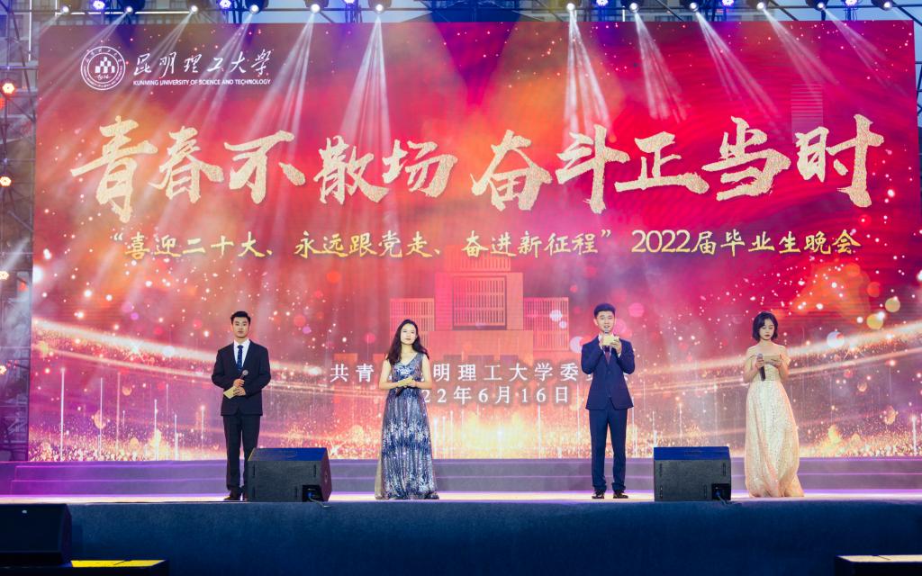 晚会以“青春不散场 奋斗正当时”为主题,通过“青春同行·根植红土共成长”和“逐梦未来·肩负使命勇担当”两个篇章,展示了昆工学子朝气蓬勃的精神面貌,表达了2022届全体毕业生对青春以及大学时光的不舍和眷恋。