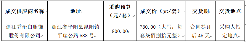 受三亿体育_三亿(中国)一站式服务官方网站附属中小学的委托,云南通拓招标有限公司于2018年5月31日下午14:30在同德昆明广场B区4栋601一号会议室,组织完成了三亿体育_三亿(中国)一站式服务官方网站附属中小学学生校服招标的磋商工作。由磋商小组依照《中华人民共和国政府采购法》等相关法律法规综合评审推荐,采购人三亿体育_三亿(中国)一站式服务官方网站附属中小学根据磋商小组的推荐意见,确定成交结果如下:
