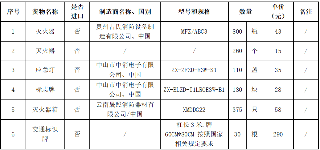 采购内容:消防设备