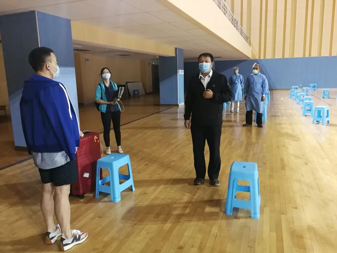 晚上9点,学院负责人到核酸检测结果等待区看望同学