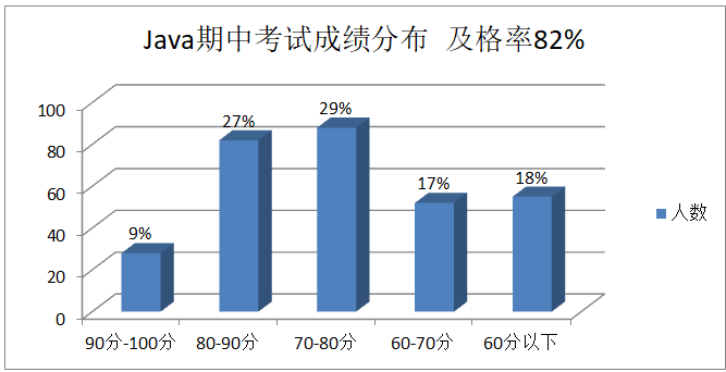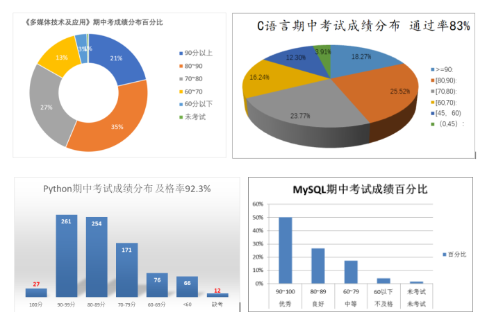 图1.计算机基础课各门课程期中考试成绩分布