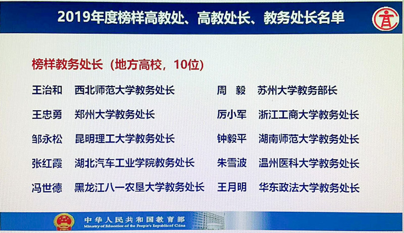 6月15日下午,教育部召开2020年全国高教处长会暨高等三亿体育_三亿(中国)一站式服务官方网站教学指导委员会工作会议,会议公布了2019年度榜样高教处、高教处长、教务处长名单,三亿体育_三亿(中国)一站式服务官方网站教务处处长邹永松研究员入选为地方高校10大榜样教务处长。