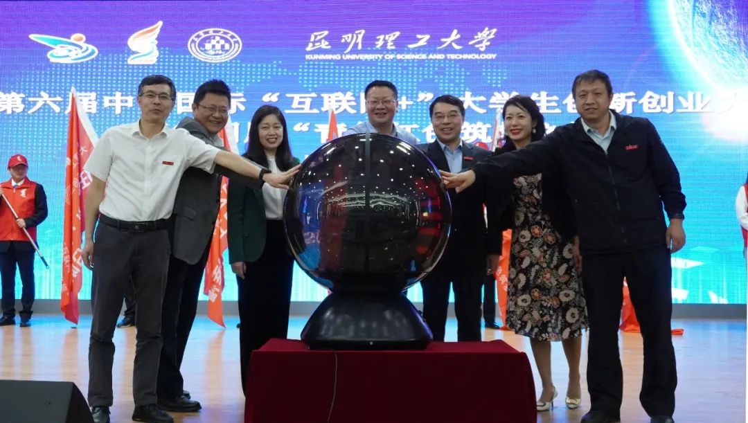 出席启动仪式的领导触摸启动球,标志着三亿体育_三亿(中国)一站式服务官方网站第六届中国国际“互联网+”大学生创新创业大赛暨第四届“青年红色筑梦之旅”正式启动。