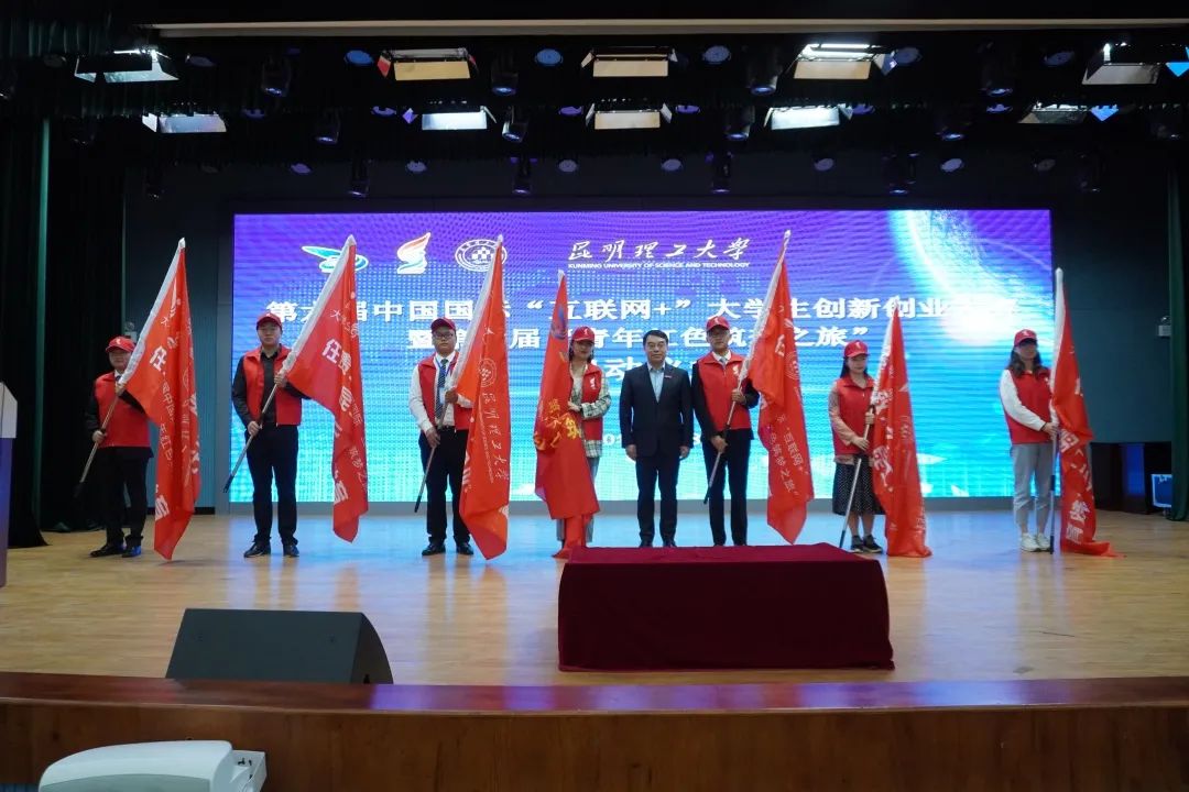启动仪式上还举行了授旗仪式,王学勤校长向参加“青年红色筑梦之旅”活动的代表队授旗。“互联网+”大赛指导教师杨毅、胡寅和学生代表朱恒希分别发言。