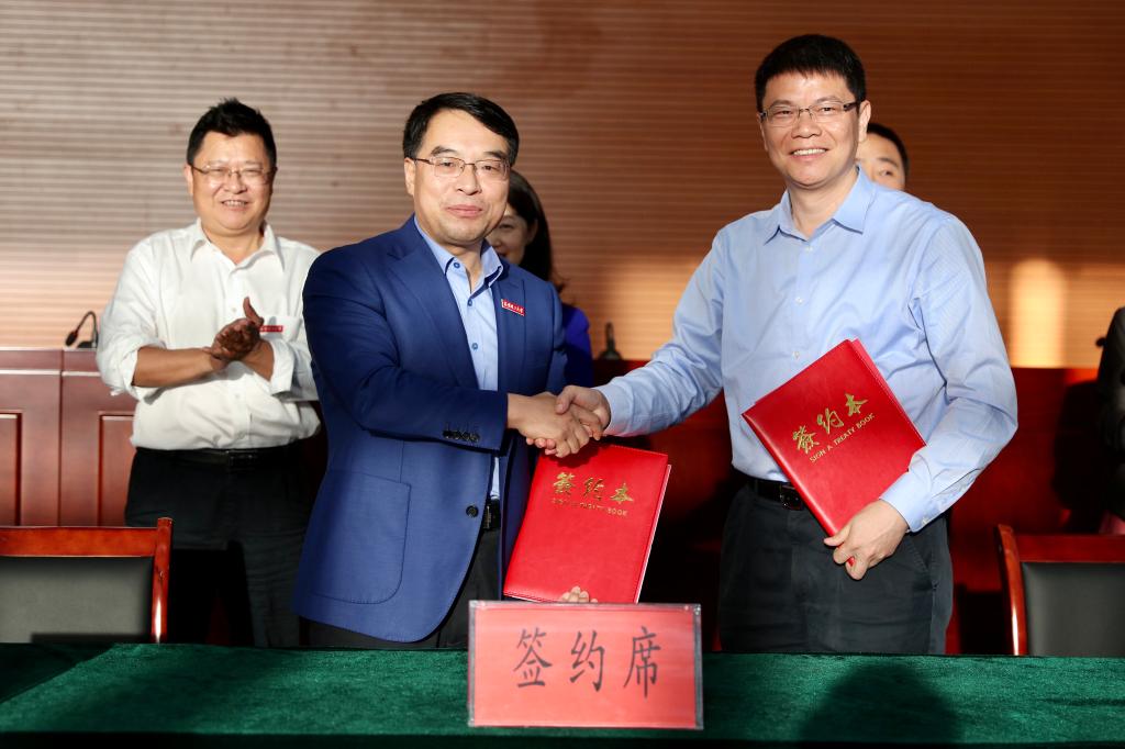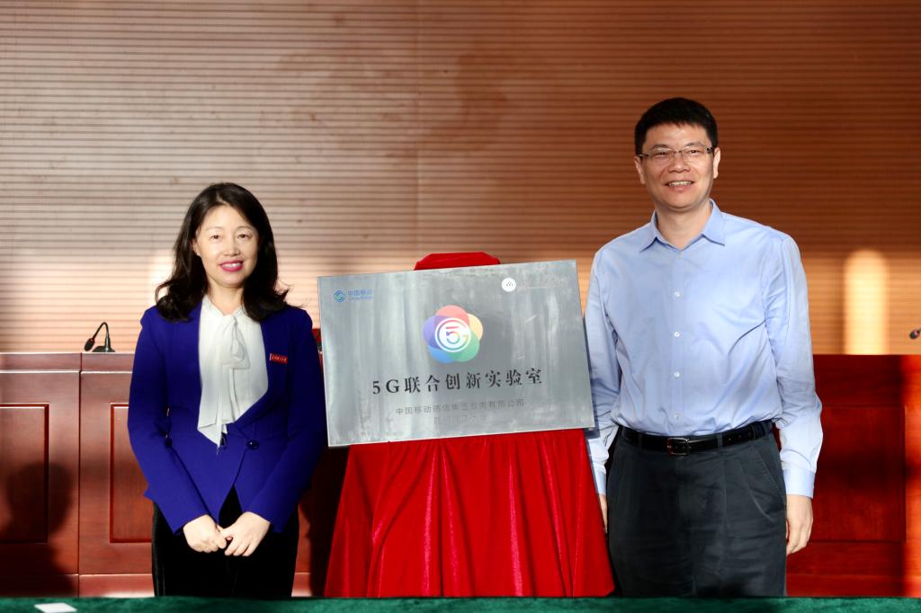 仪式上,张英杰书记与葛松海总经理共同为“5G联合创新实验室”揭牌,王学勤校长与葛松海总经理分别致辞并代表校企双方签署合作协议。