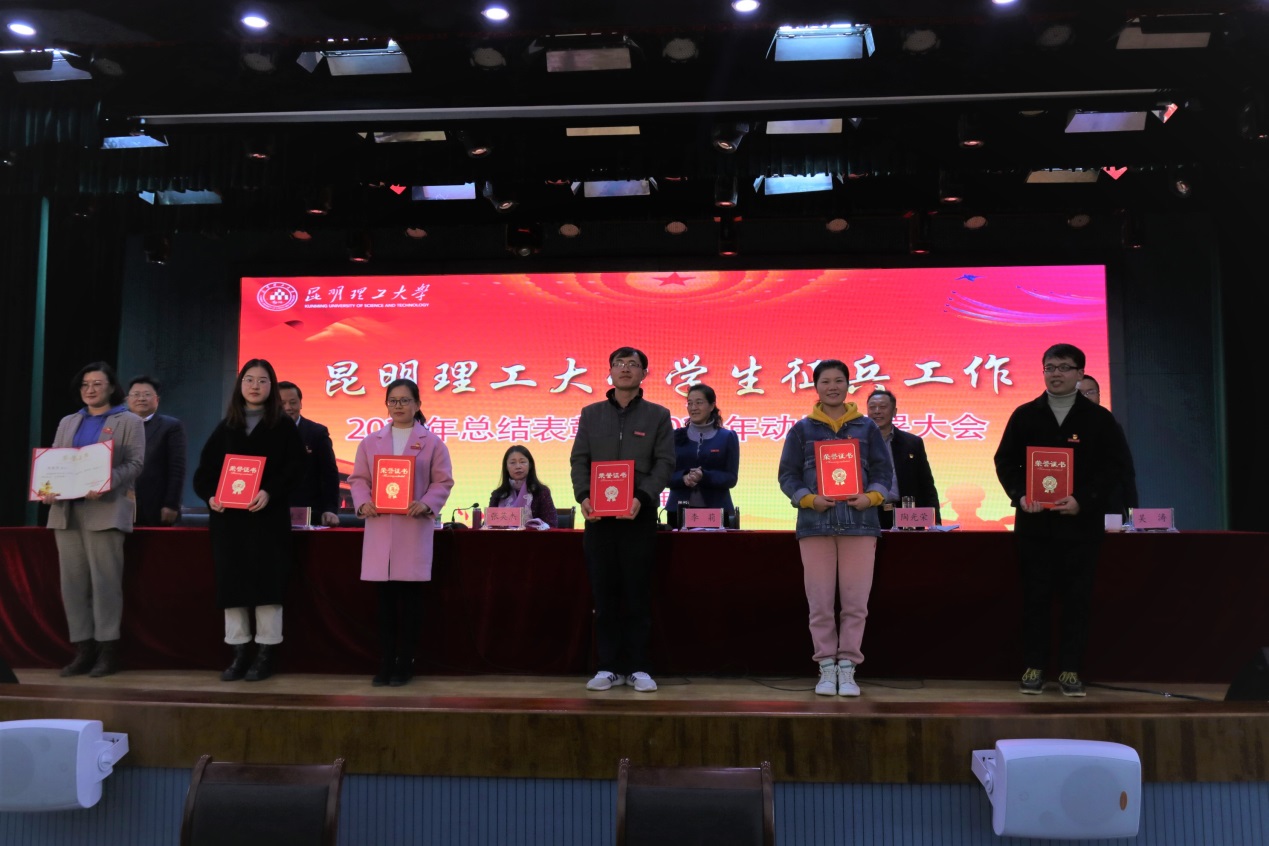 张英杰全面总结了我校2020年征兵工作。她指出,2020年,在省委、省政府的坚强领导下,在省军区的关心支持下,我校坚决贯彻落实国防部“两征两退”征兵工作改革相关指示精神,在疫情防控严峻形势下,准确识变、科学应变、主动求变,开拓创新,多措并举,在疫情防控严峻形势下,圆满完成了2020年大学生征兵工作任务。2020年我校共完成士兵征集182人,其中从云南省入伍的男兵160人,超任务数完成36人(任务总数124人),从云南省入伍的应届毕业生78人,超任务数47人(任务数31人)。